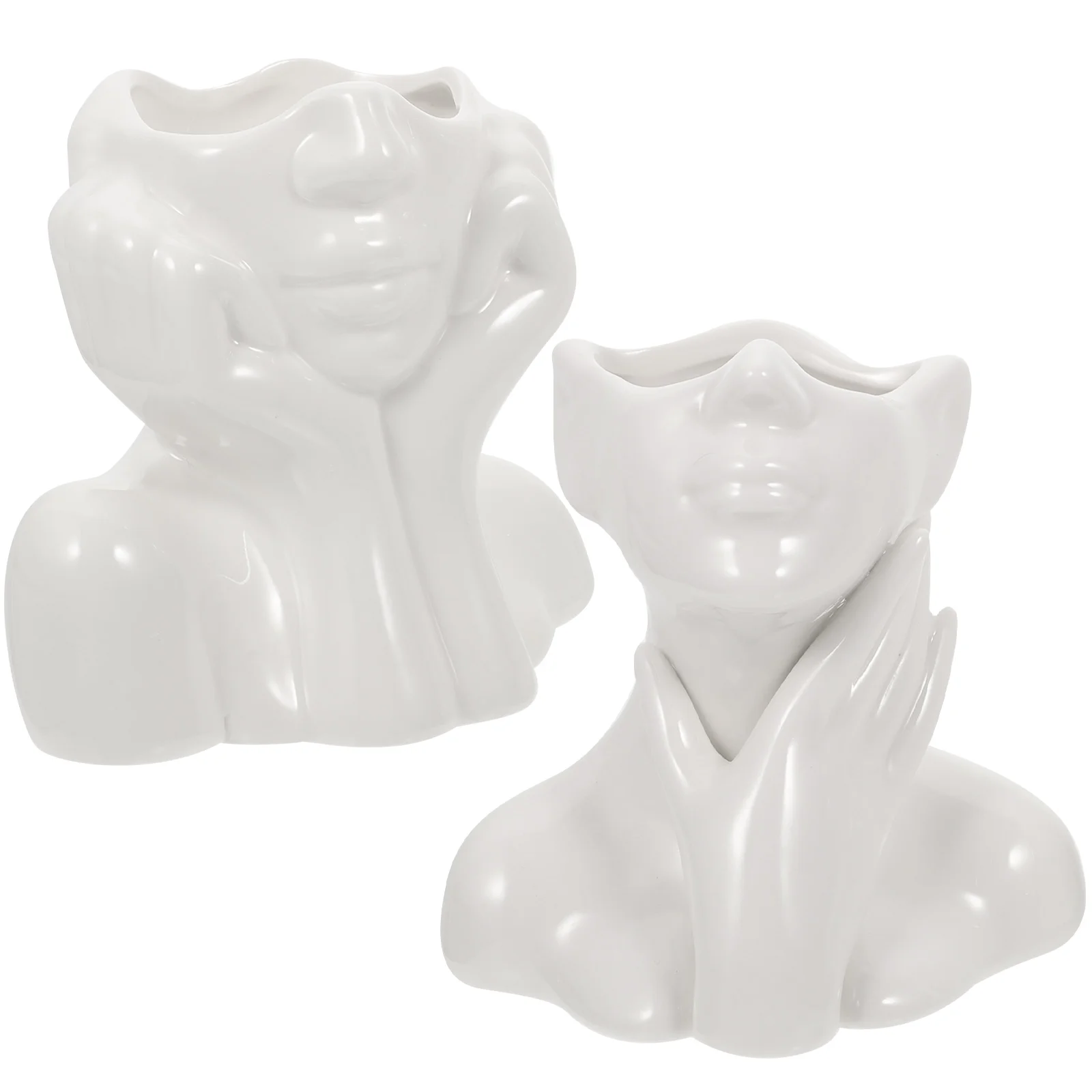 Горшок для вазы, горшок для выращивания лица, цветок, суккулент, Женская Керамическая половинная композиция, человеческая книжная полка, ун...