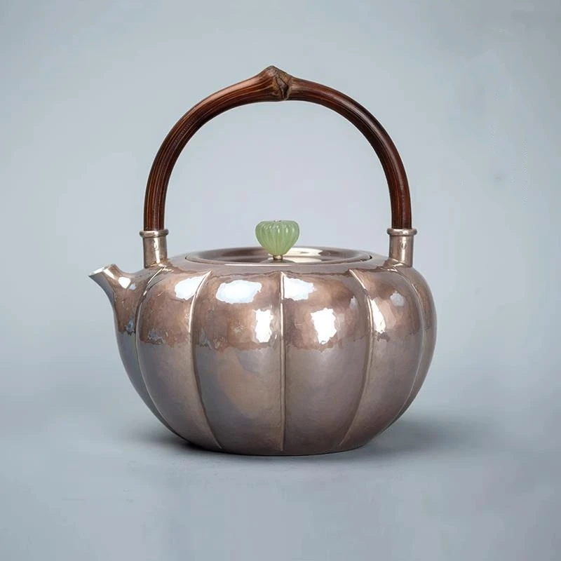 Горшок для кипящей воды из чистого серебра 99,9%, цельный горшок ручной работы с подъемной бачкой для приготовления чая, кипящей воды, горшок для тыквы