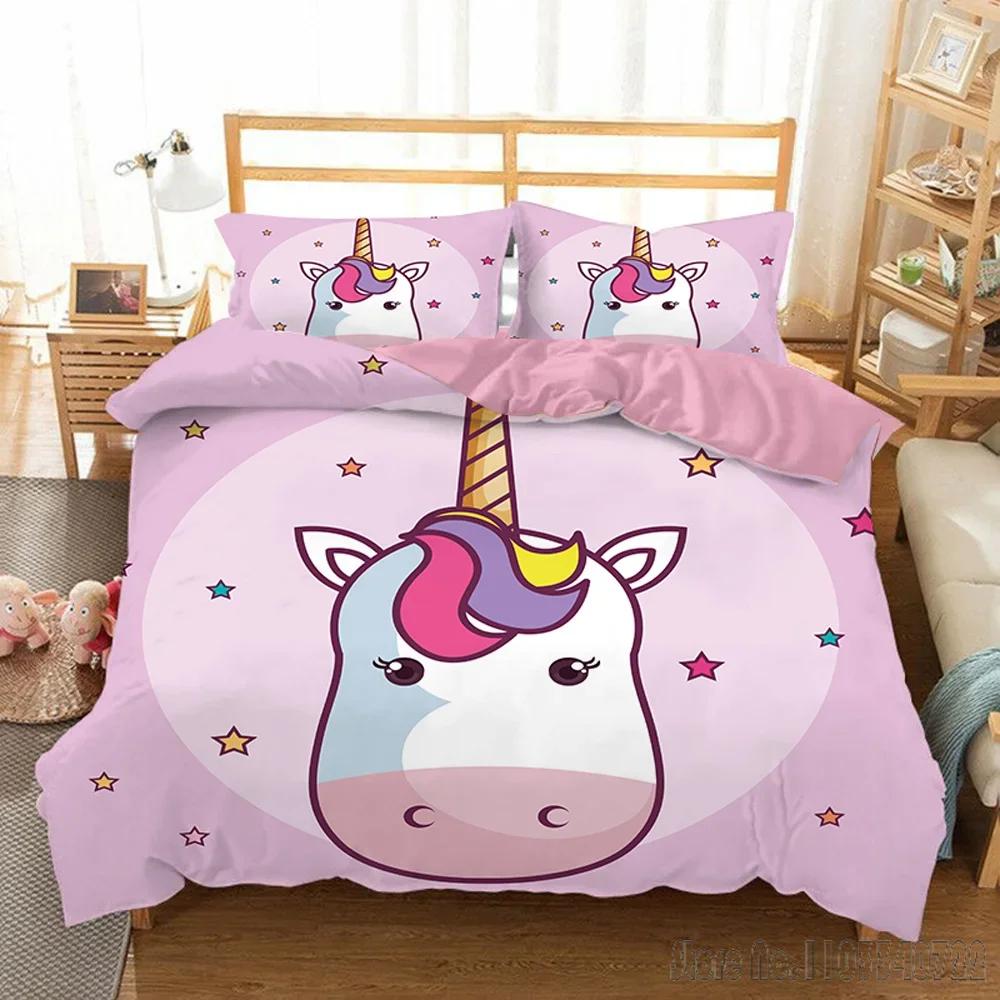 Горячая Распродажа Мультяшный Единорог Детский Девочки Розовый 3D Комплект Пододеяльника HD Покрывало для Детей Комплекты Постельного Белья Постельные Принадлежности Декор Спальни Baby 120x150cm