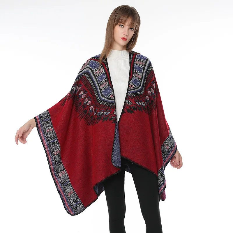 Горячая Распродажа вязаная шаль для женщин женские имитация кашемира Разделение шаль с цветами на осень и зиму теплая верхняя одежда плащ д...