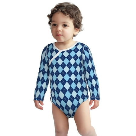 Haiem Blue Squares Printed Unisex-Baby Long Sleeve Onesies Bodysuits Unisex Babies Snap-Up Rompers-2 Years
