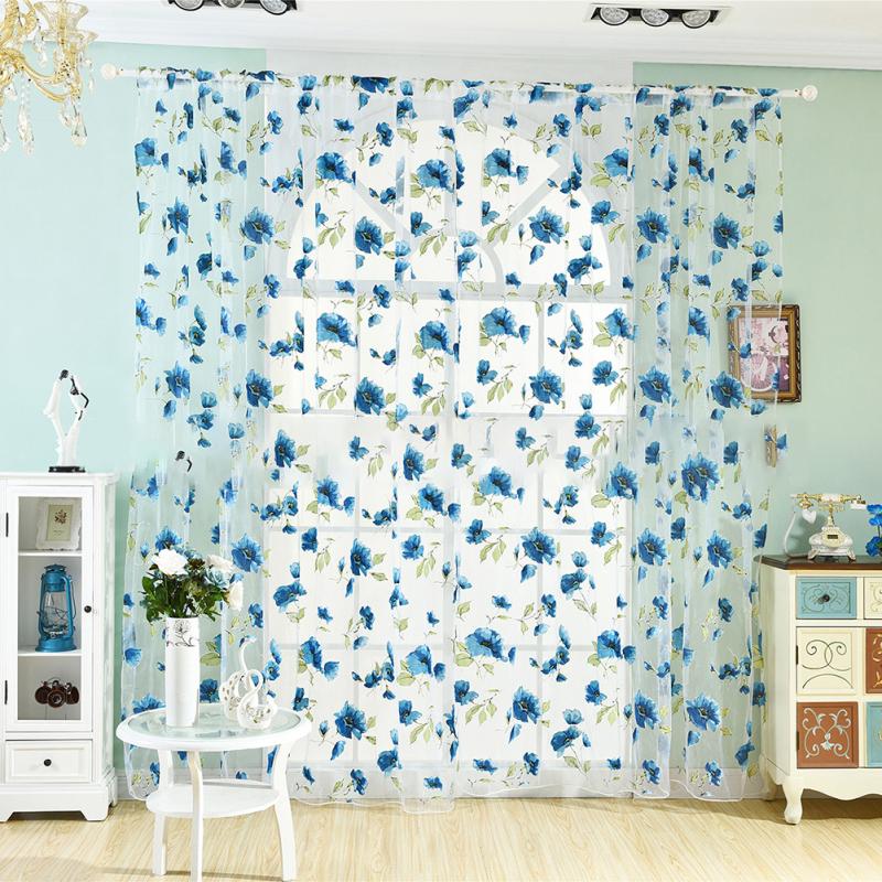 Горячая, Тюлевая прозрачная занавеска с принтом, богатая цветочная штанга, карманная занавеска для спальни, гостиной, ванной комнаты синий