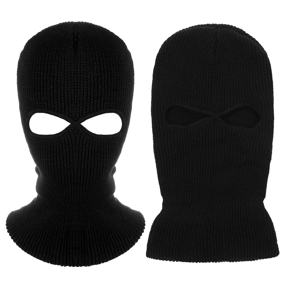 Горячая маска с 2 отверстиями, Балаклава, черная вязаная шапка, защита для лица, облегающая шапка, зимняя теплая ветрозащитная и непроницаем...