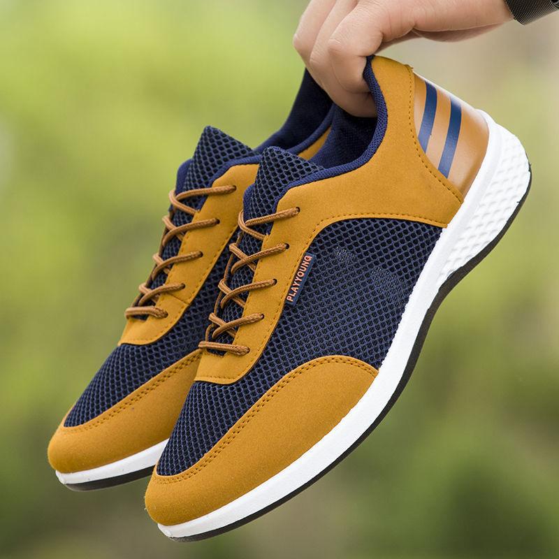 Горячая мужская новая весенняя дышащая сетчатая спортивная обувь мужская модная повседневная обувь для мужчин на шнуровке легкая мужская повседневная обувь 2024 44 темный кофе