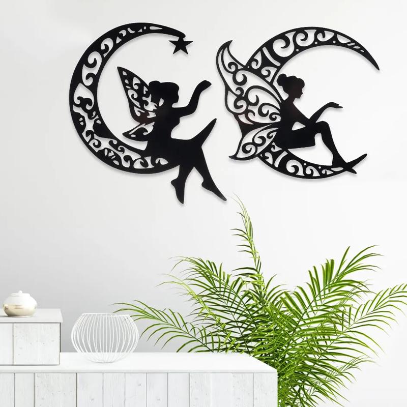 Горячая распродажа Металлическое ремесло Украшение Силуэт Лунная Кошка Полая Черная Кошка И Лунный Дом