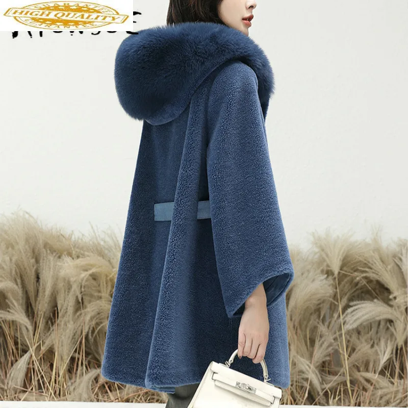 Real Fur Coat 100% Wool Jacket Women Clothes 2020 Fox Fur Collar Sheep Shearing Winter Coat Women Korean Fur Tops 18168 YY2199