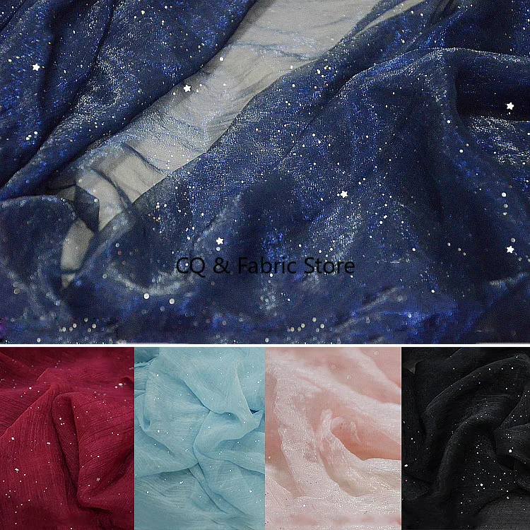 Горячее сверление и позолота с блестками, парчовая шелковая шифоновая кружевная ткань с морщинами для модного свадебного платья, платье Лолиты по метрам
