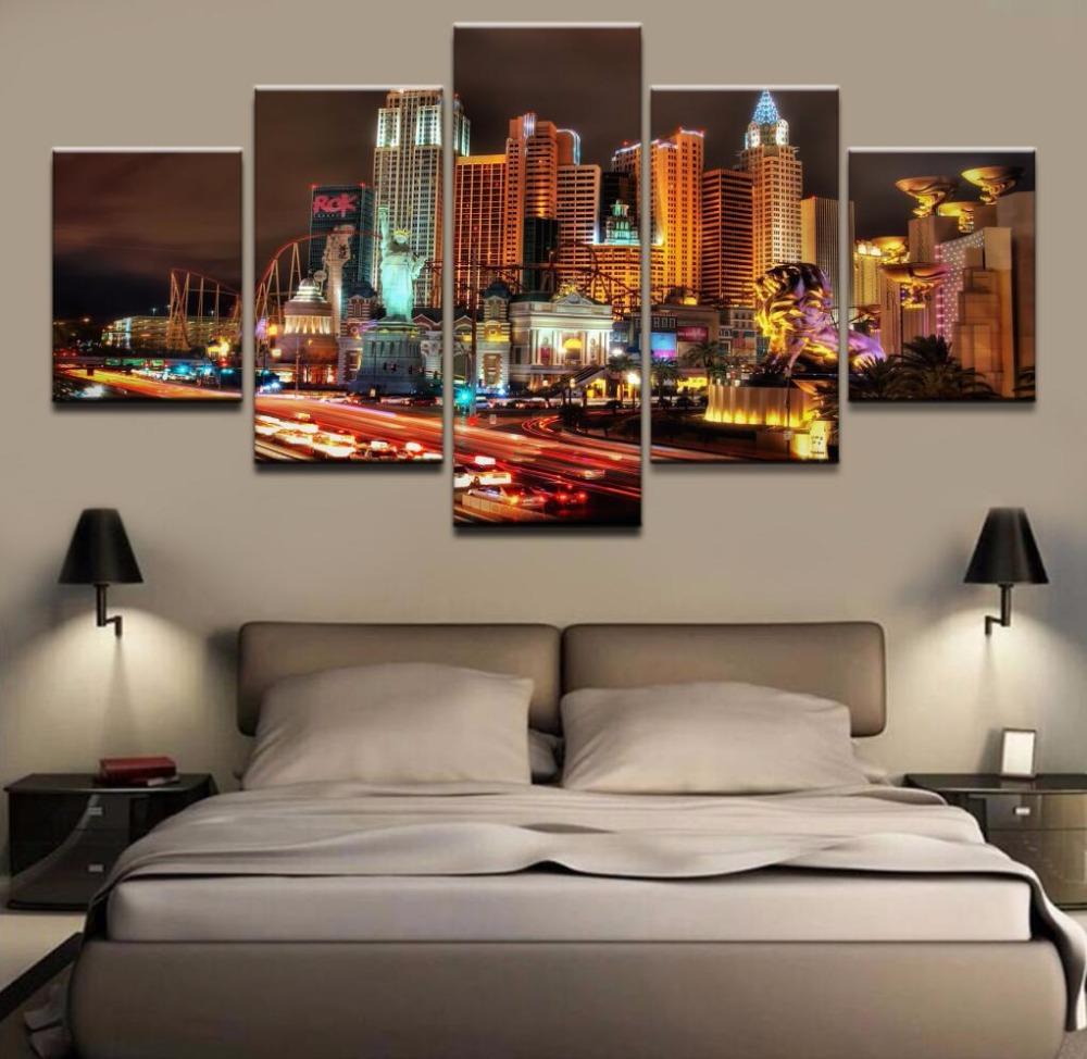 Горячие 5 шт., Лас-Вегас, город, печать на холсте, холст, настенная живопись, домашний декор, 5 панелей, модульная без рамки