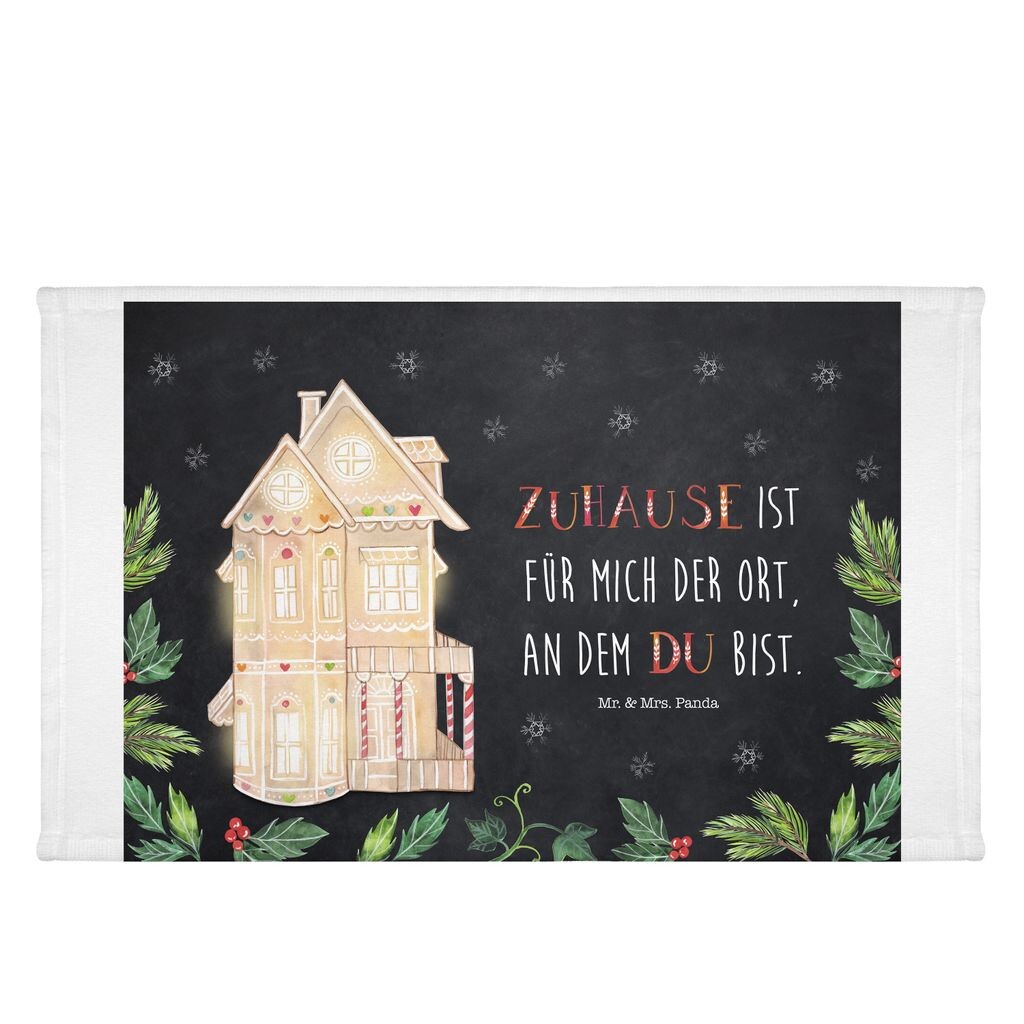 Гостевое полотенце Mr. & Mrs. Panda пряничный домик - белое - подарок, новогоднее украшение, гостевое полотенце, детское полотенце, Дед Мороз, махровое полотенце, Рождество, Адвент, спортивное полотенце, белый