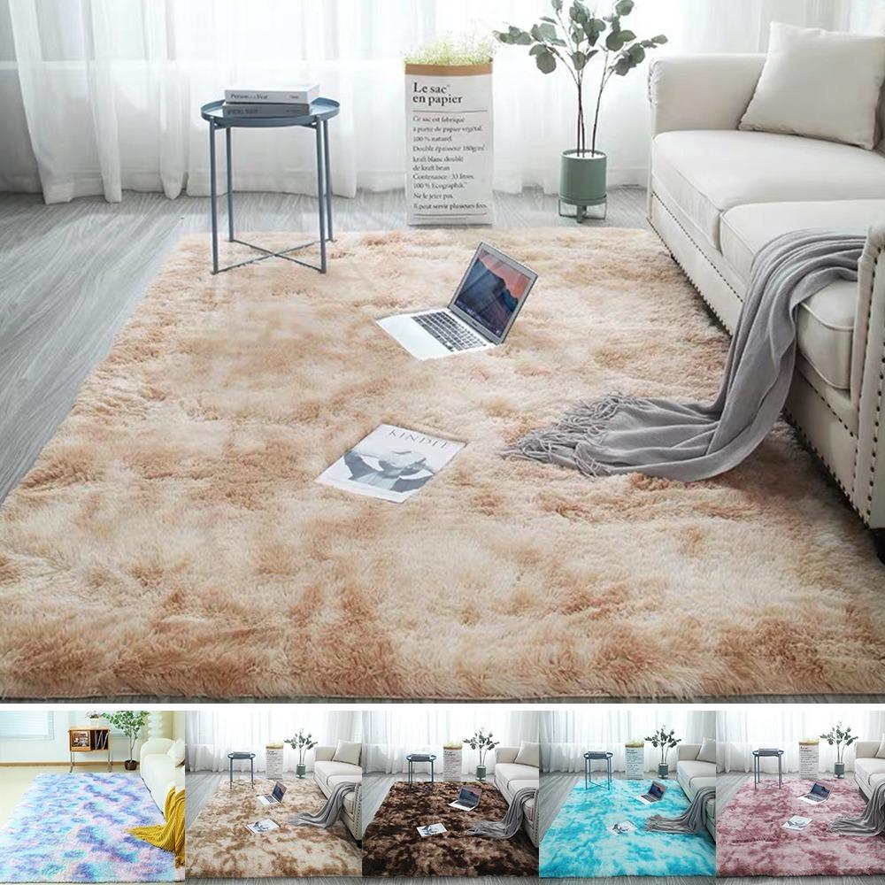 Гостиная Длинный бархатный ковер Главная Спальня Кровать Полный напольный коврик Nordic Диван Нескользящий коврик Tie Dyed Gradient Plush Rugs для спальни 40X60CM верблюд