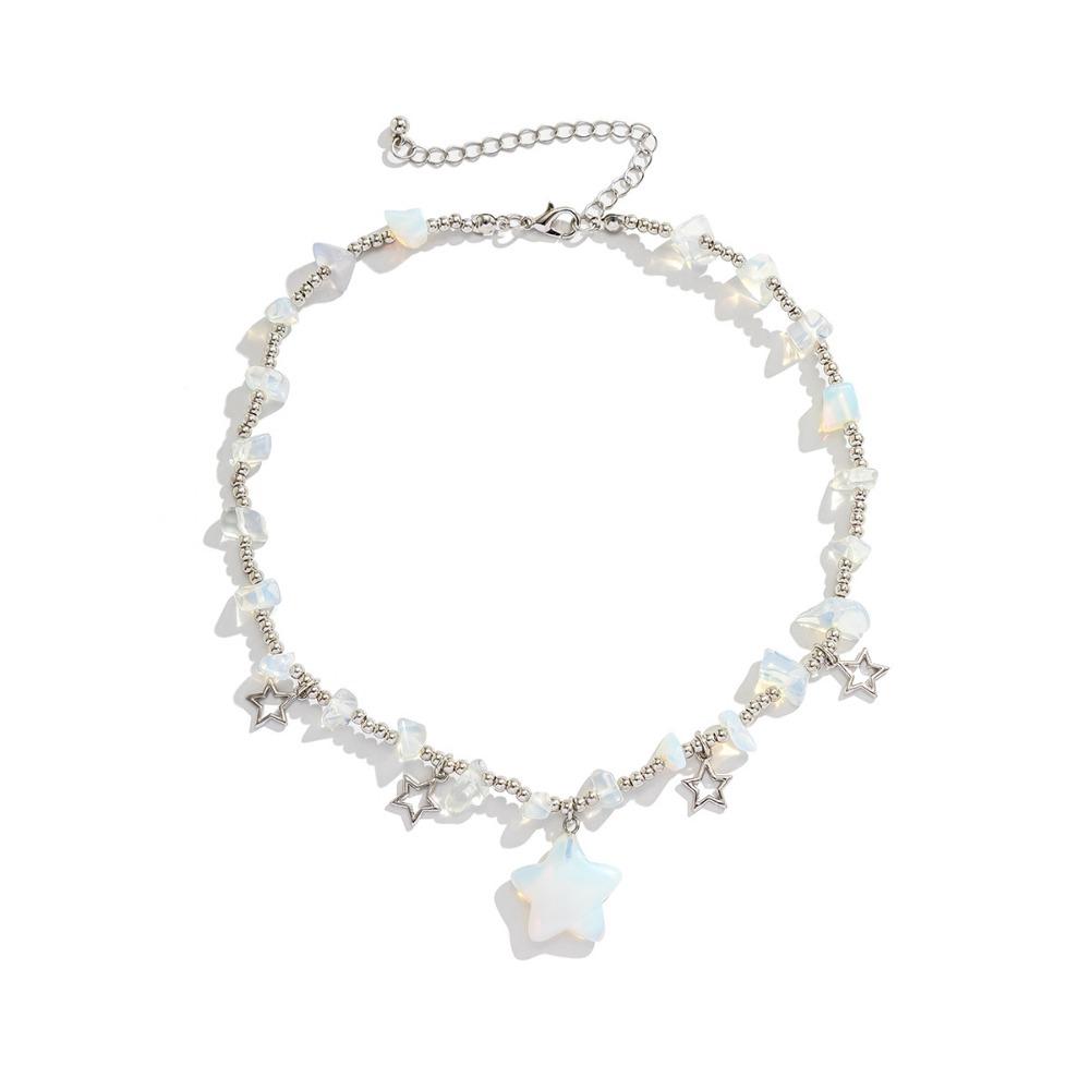 Готические бусины Цепочка Ожерелье на ключицу в форме звезды Подвеска в виде полой звезды из дробленого камня Летний пляж Style D