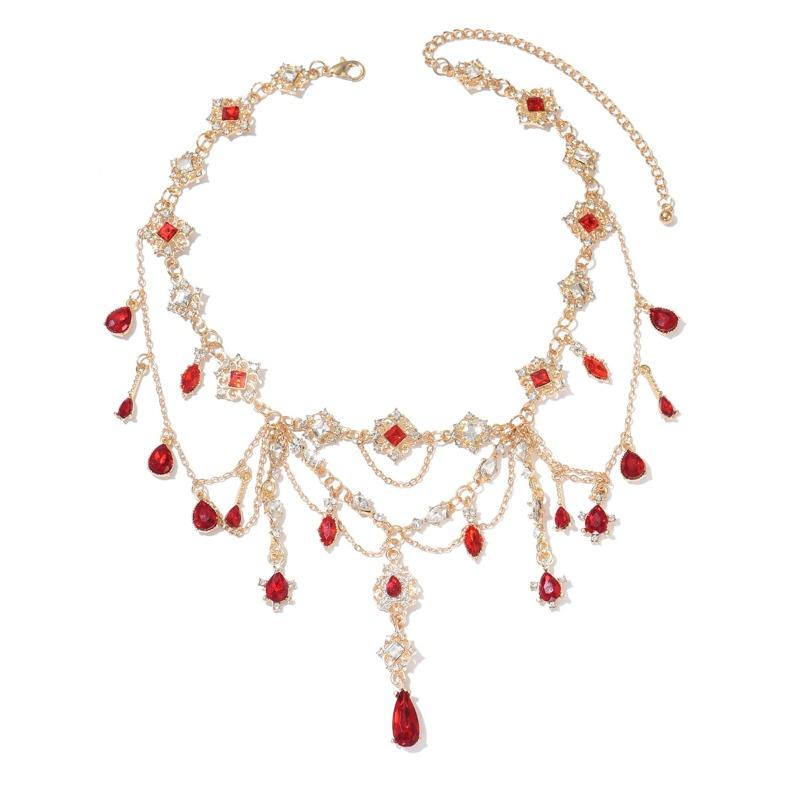Готическое ожерелье Тяжелая промышленность Кисточка Подвеска с красным камнем Премиум Винтаж Многослойная цепочка для ключицы Женская