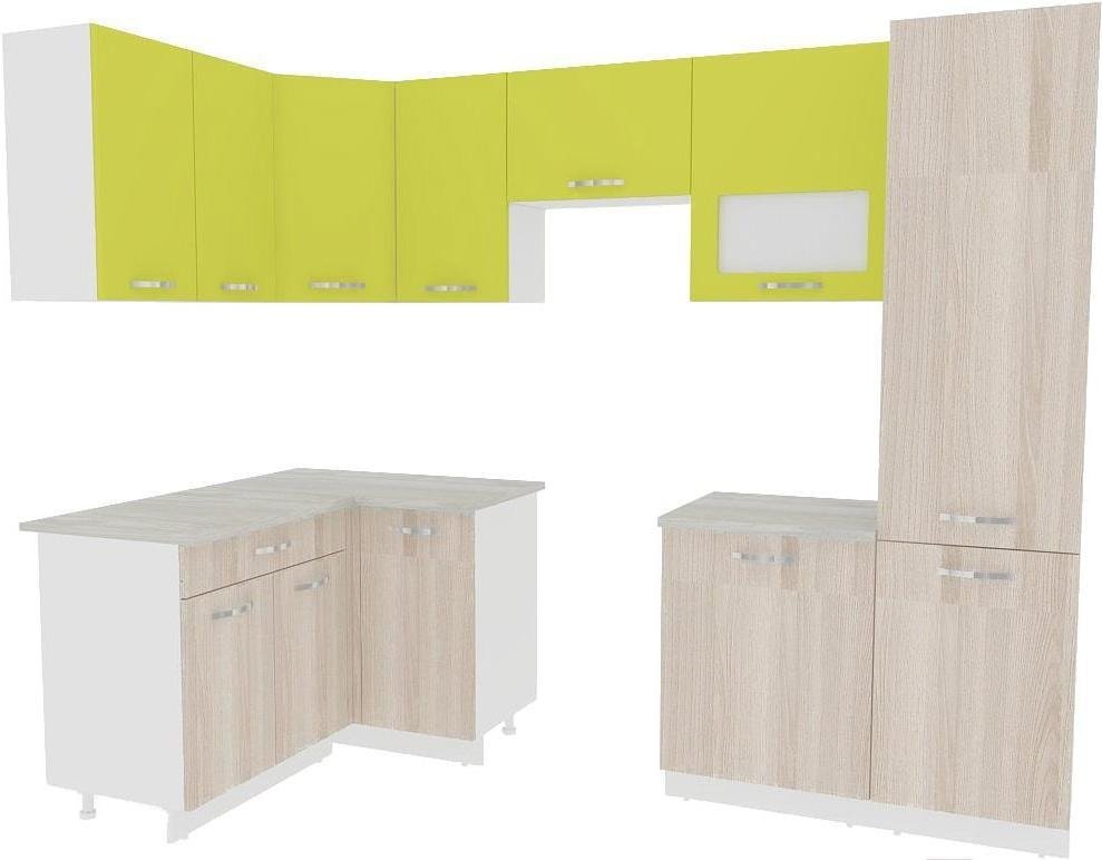 Готовая кухня ВерсоМебель Эко-5 1.4x2.6 левая (ясень шимо светлый/зеленый лайм)