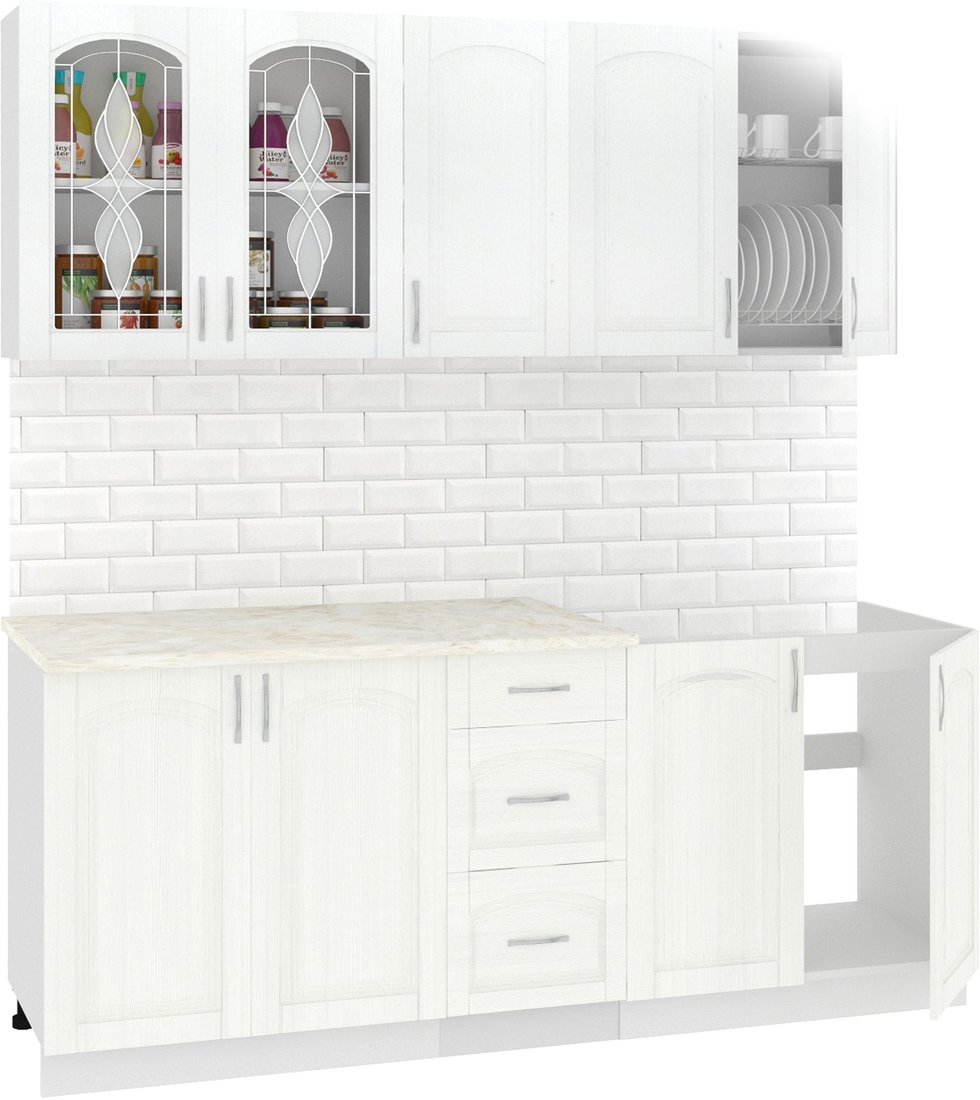 Готовая кухня Кортекс-мебель Корнелия Ретро 2.0м без столешницы (ясень белый)