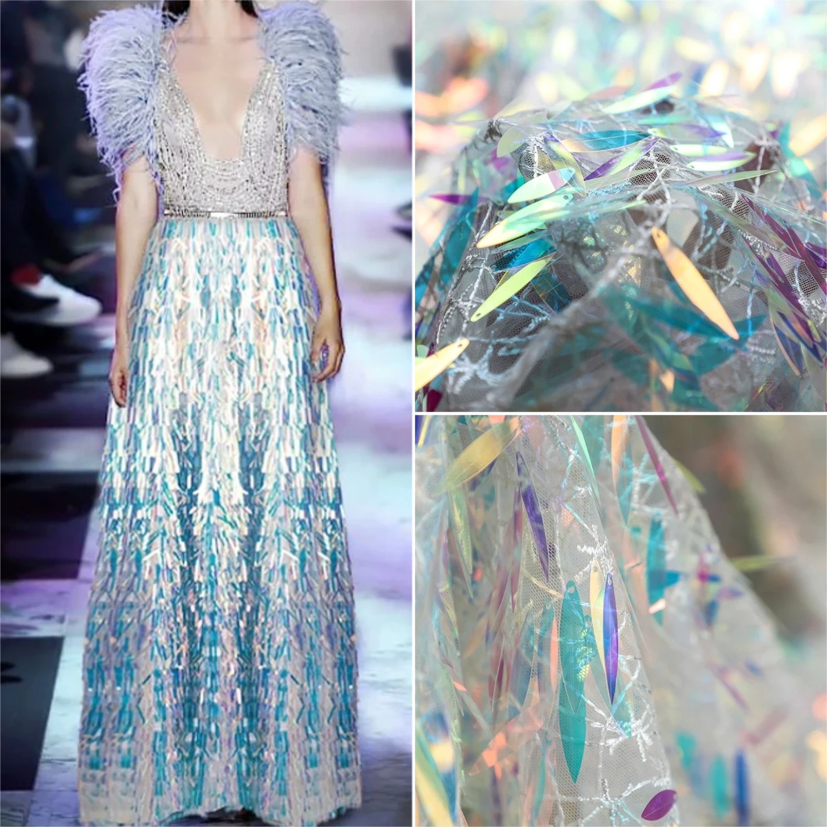 Градуально меняющая цвет, расшитая блестками лазерная кружевная ткань, шитье сценических костюмов, модные платья, детская одежда, ткань «сделай сам»