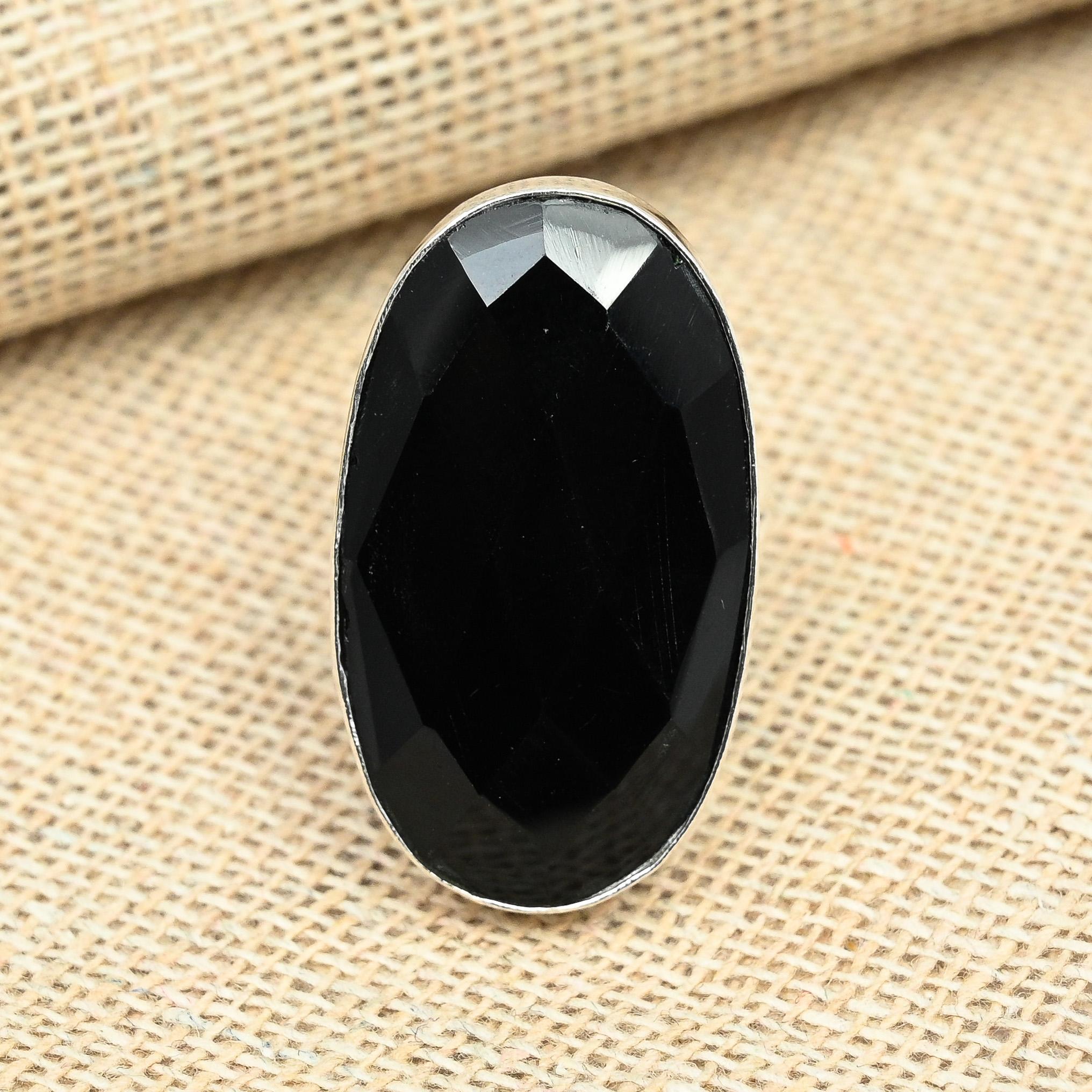 Граненый черный шпинель драгоценный камень твердое серебро 925 пробы ювелирные изделия ручной работы свадебное подарочное кольцо 8.5 чёрный