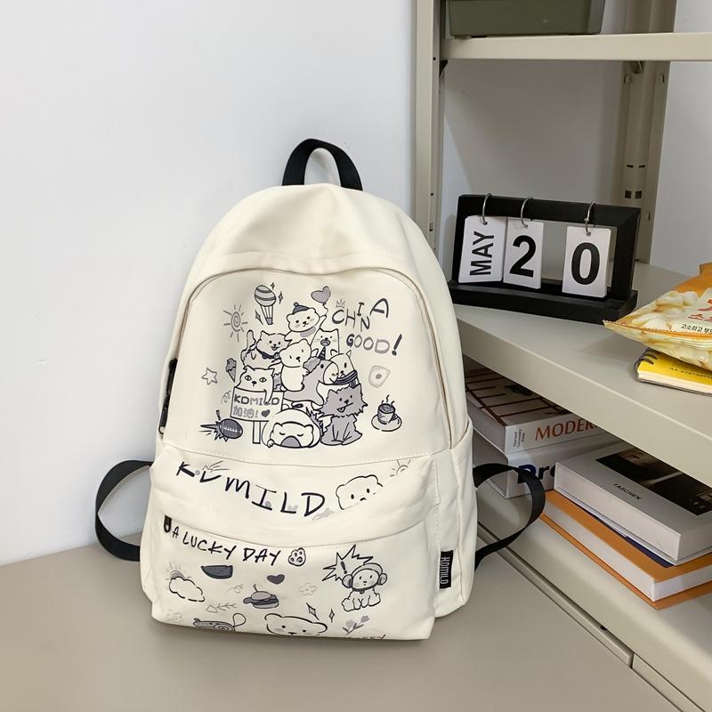 Граффити школьная сумка женская большая вместимость компьютерный дорожный рюкзак студенческий рюкзак Small чёрный/белый