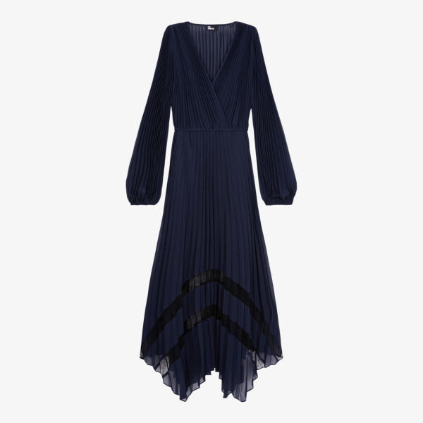 Тканое платье миди с V-образным вырезом и асимметричным подолом The Kooples, темно-синий