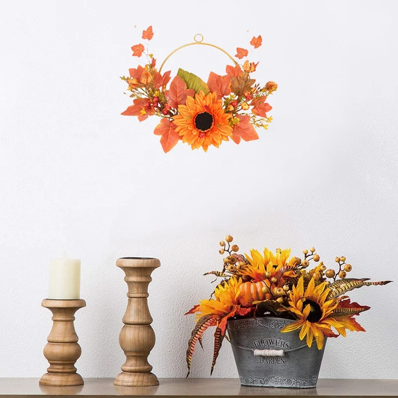Искусственная гирлянда из подсолнухов и кленовых листьев, подвесной венок для двери, подвесное украшение для окон и дверей