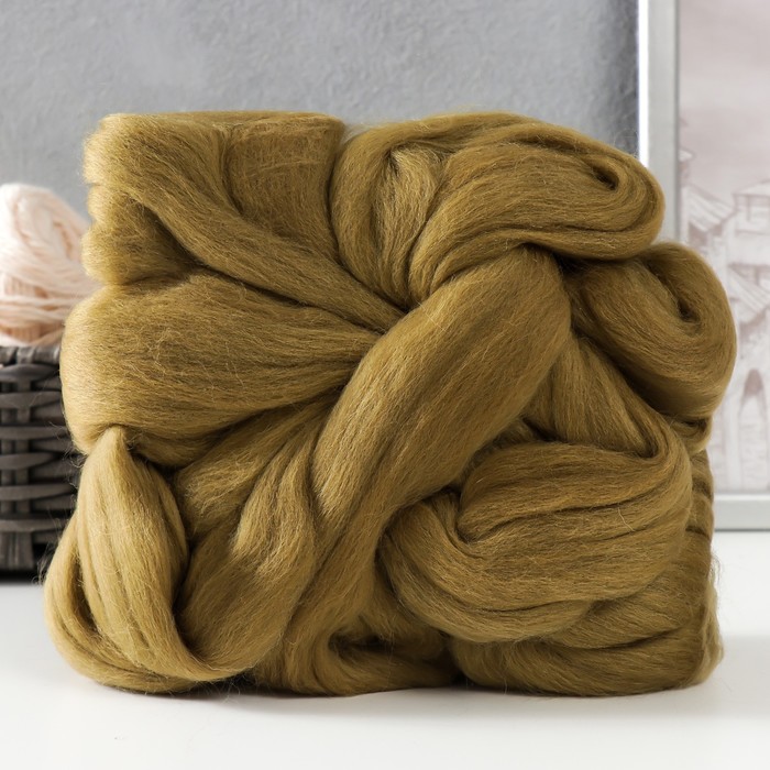 Гребенная лента 100% полутонкая шерсть 100гр (494 Св.Хаки), Шерсть для валяния "Полутонкая"