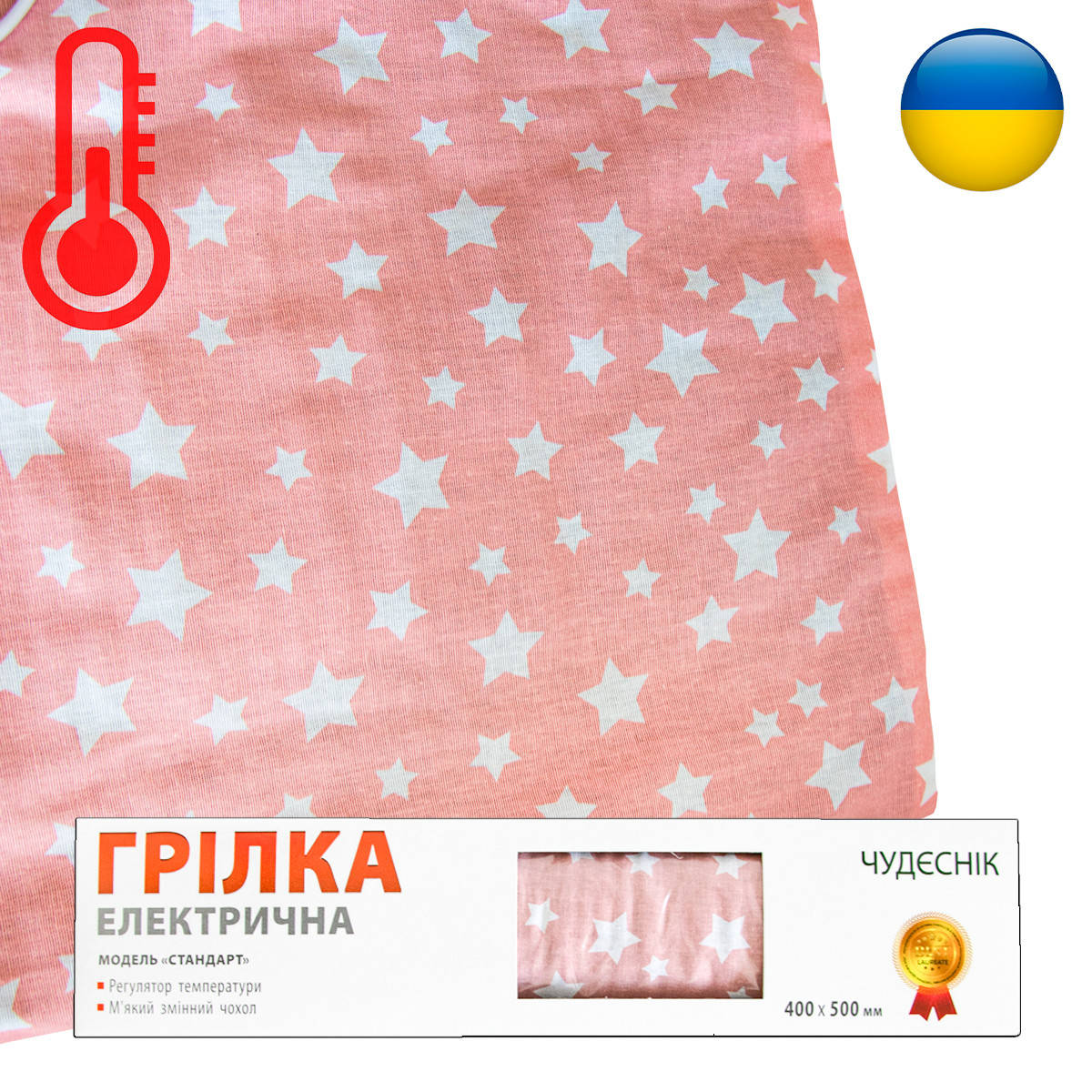 Грелка электрическая "Чудесник" Розовая со звездами 40х50 см, електрогрелка с терморегулятором 45Вт (NS)
