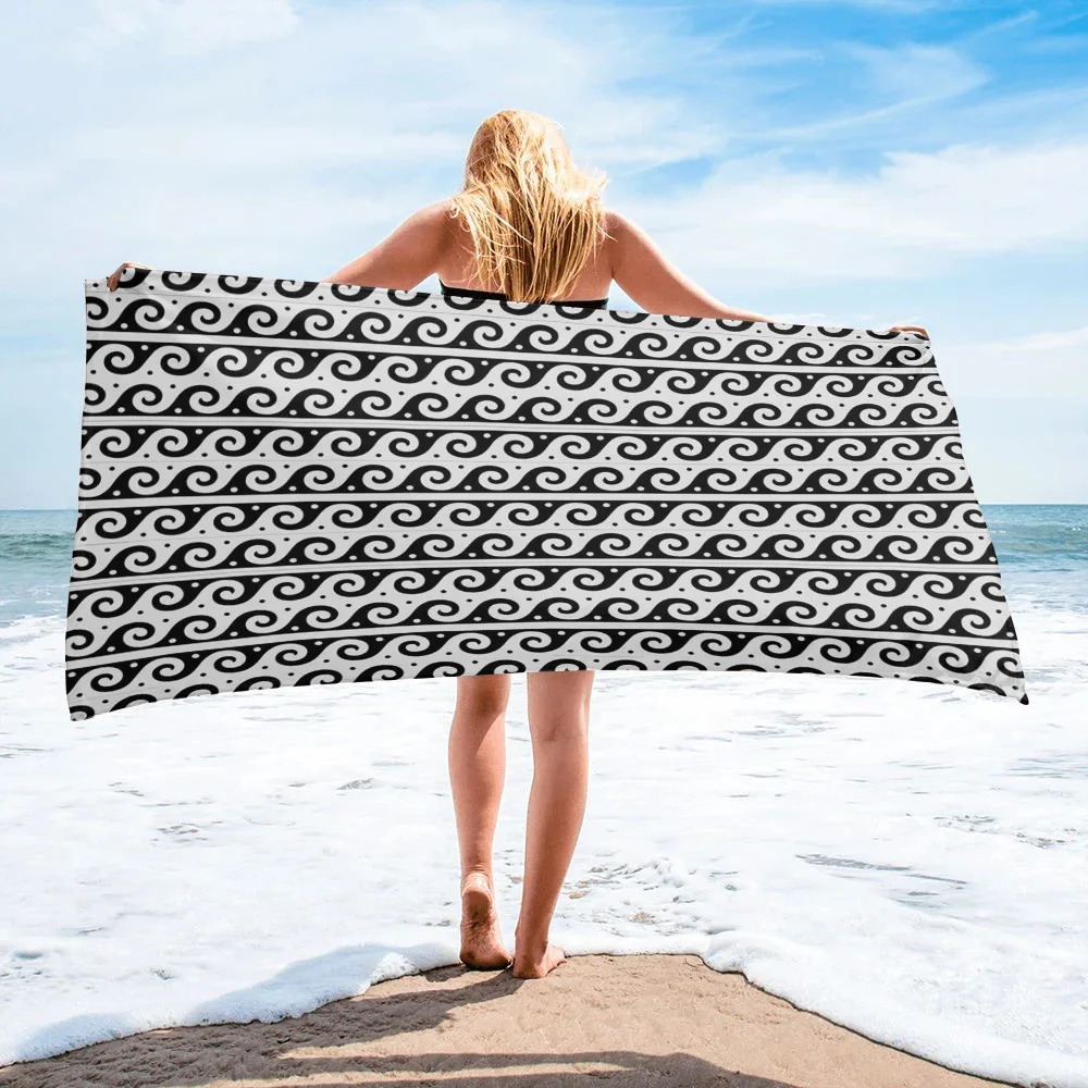 Греческое черно-белое быстросохнущее банное полотенце с символом в горошек, летнее женское полотенце, банное полотенце из микрофибры для в...