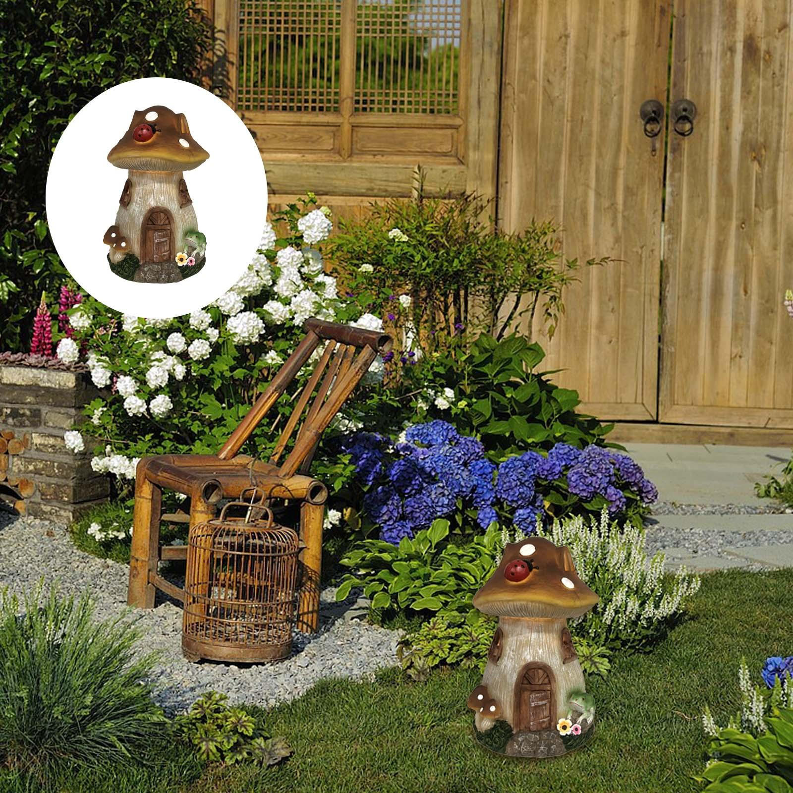 Грибной дом, статуя, ночник, садовая скульптура, очаровательный водонепроницаемый газонный орнамент на солнечной энергии коричневый