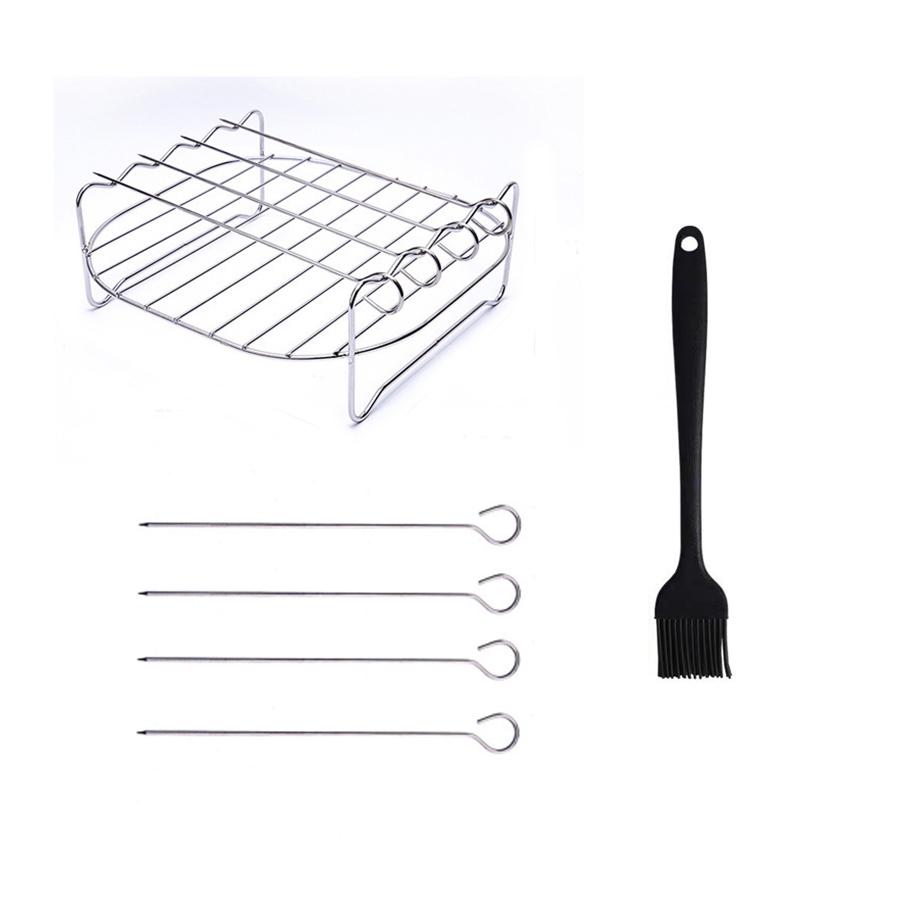 Гриль для аэрофритюрницы, электрическая фритюрница из нержавеющей стали, аксессуары для гриля, 4-контактная двухъярусная решетка для аэрофритюрницы с зажимом для еды