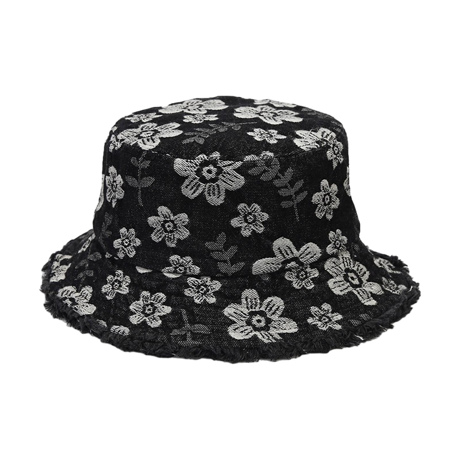 Грубая кромка, дизайн, вышитый цветок, шляпа-ведро, летняя шляпа-ведро, рыбацкая шляпа с цветком для взрослых, подростков, тканевая шляпа чёрный