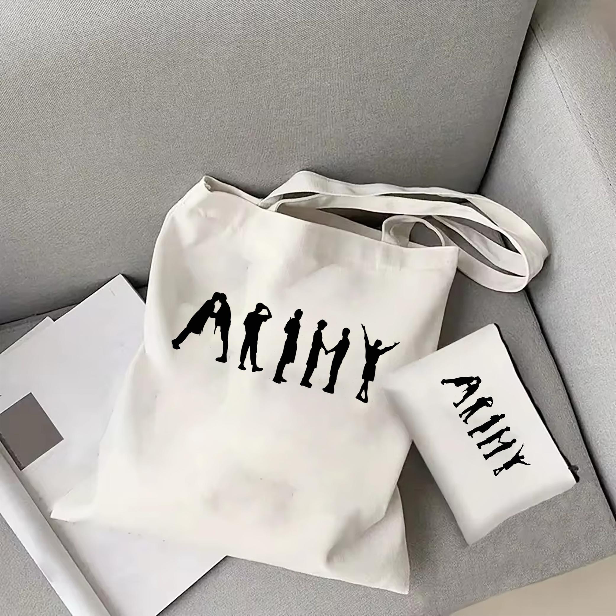 Групповая сумка-тоут армейская подарочная сумка для фанатов на плечо Групповая модная холщовая сумка Merch женская повседневная сумка для покупок WHITE