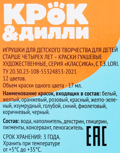 Гуашь Крок&Дилли 12 цветов по 17 мл арт. Ф113312