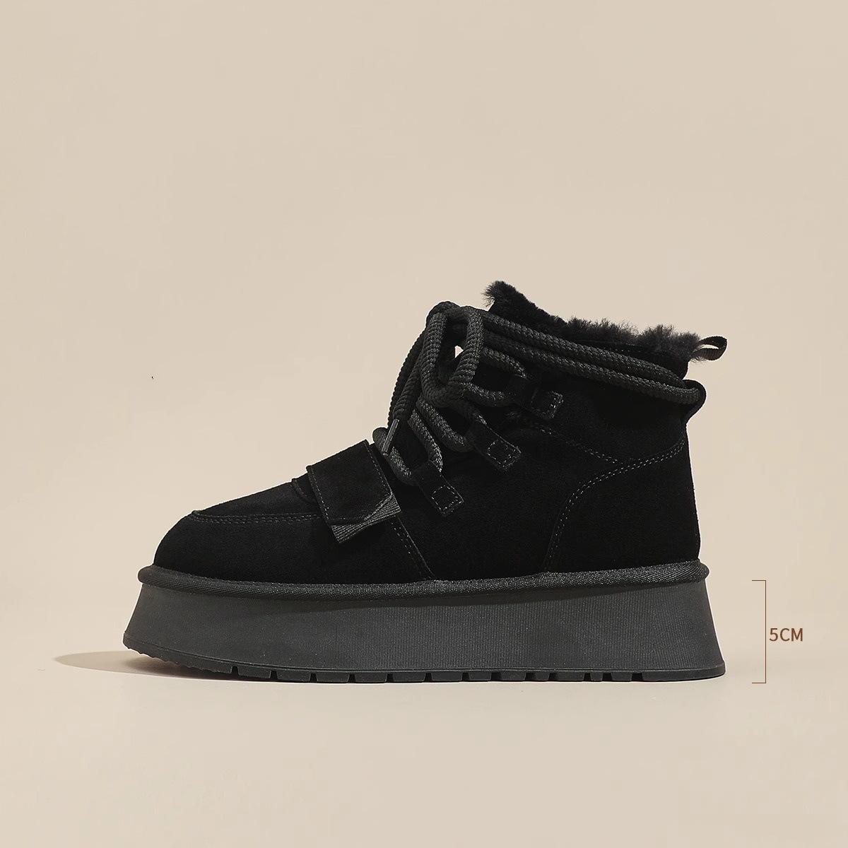 Гу Юньшу женские зимние сапоги на толстой подошве 2024 новые зимние бархатные женские туфли утолщенные для тепла Северо-восточные большие хлопковые женские туфли 35 чёрный