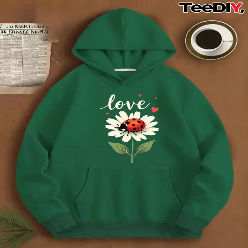 Зима-Осень, женский свитшот больших размеров, женская одежда больших размеров, милый топ из дышащей ткани с божьей коровкой и ромашкой с цветочным принтом
