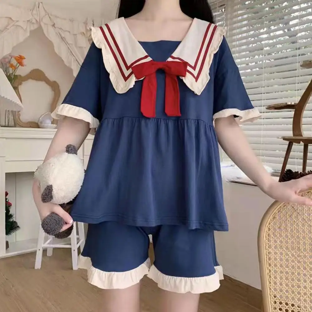 Дамская Ночная сорочка с бантом, комплект из 2 предметов, женская летняя милая и милая Свободная Домашняя одежда в стиле принцессы, костюм для отдыха