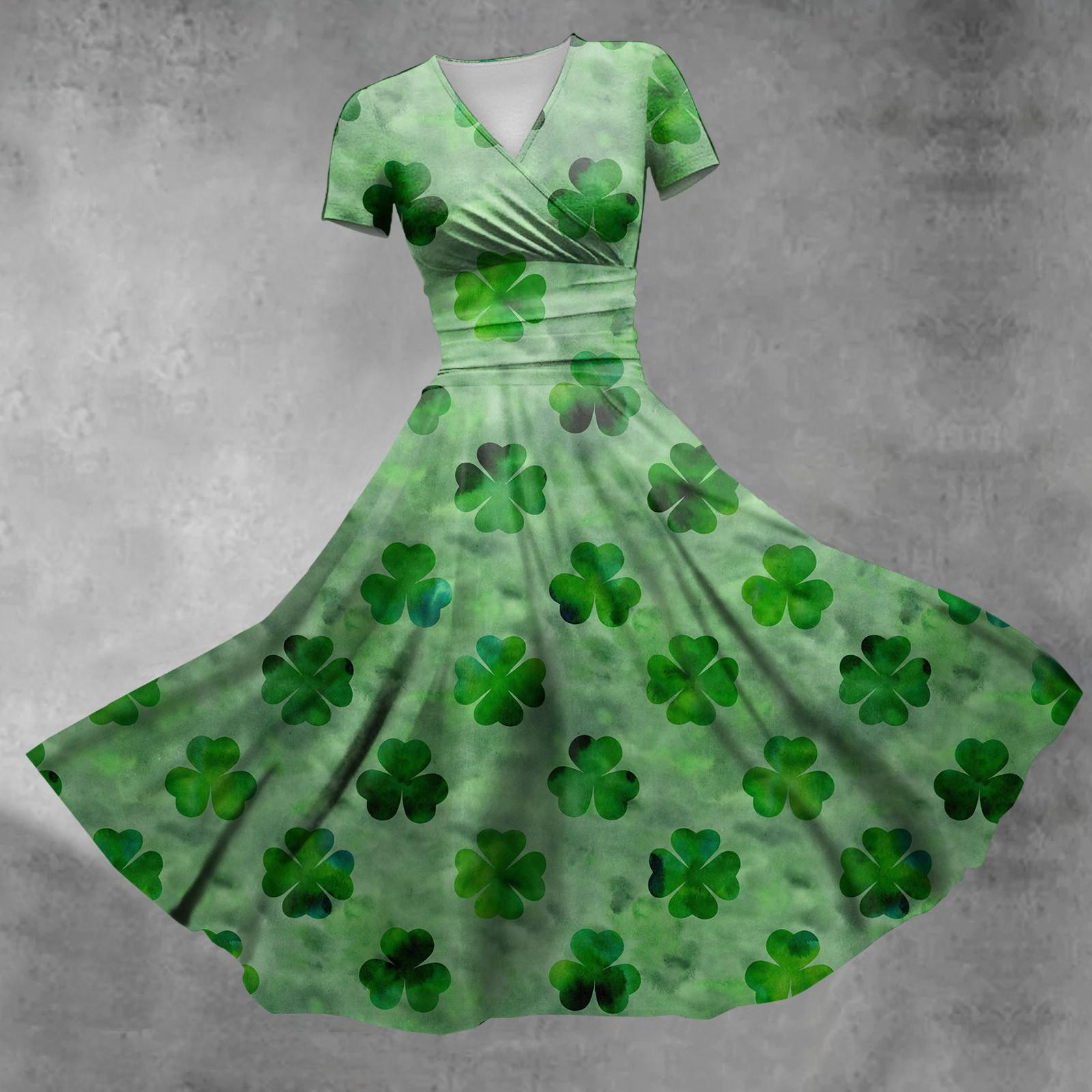 Дамское платье принцессы с сексуальным v-образным вырезом St. Платье с короткими рукавами и принтом на талии в честь Дня Святого Патрика и оборками на талии L