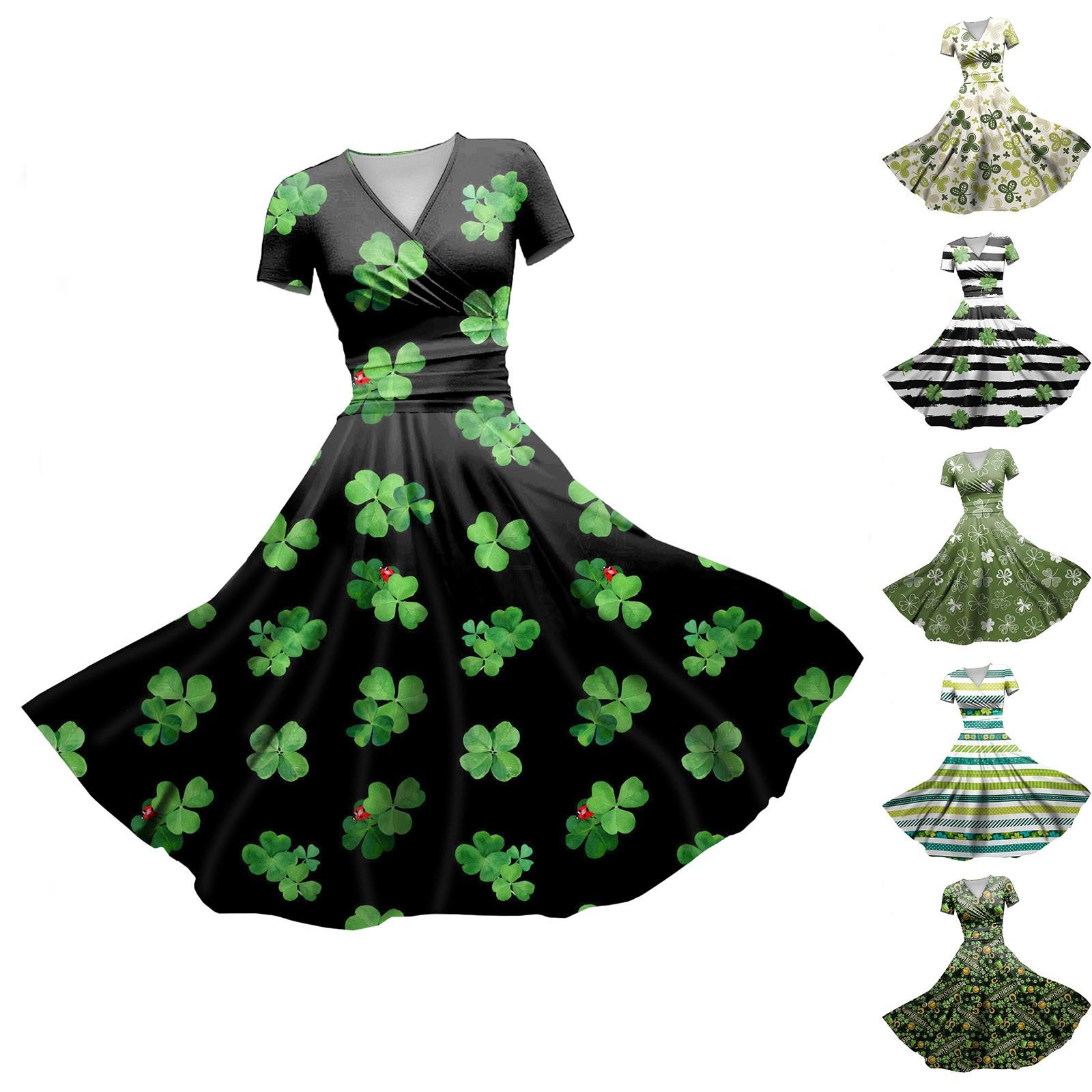 Дамское платье принцессы с сексуальным v-образным вырезом St. Платье с короткими рукавами и принтом на талии в честь Дня Святого Патрика и оборками на талии L