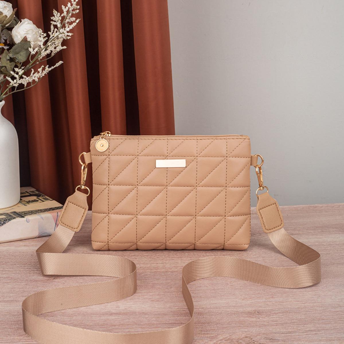 Дамы, Лоскутная клетка, Сумка через плечо, Съемный плечевой ремень, Застежка-молния, Повседневная сумочка, Компактная сумочка, Незаменимая для ежедневного использования абрикосовый