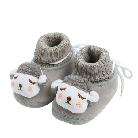 Zlekejiko Winter Children Toddler Shoes Boys And Girls Floor Shoes Elastic Band Comfortable Warm Cute Cartoon Sheep Pattern