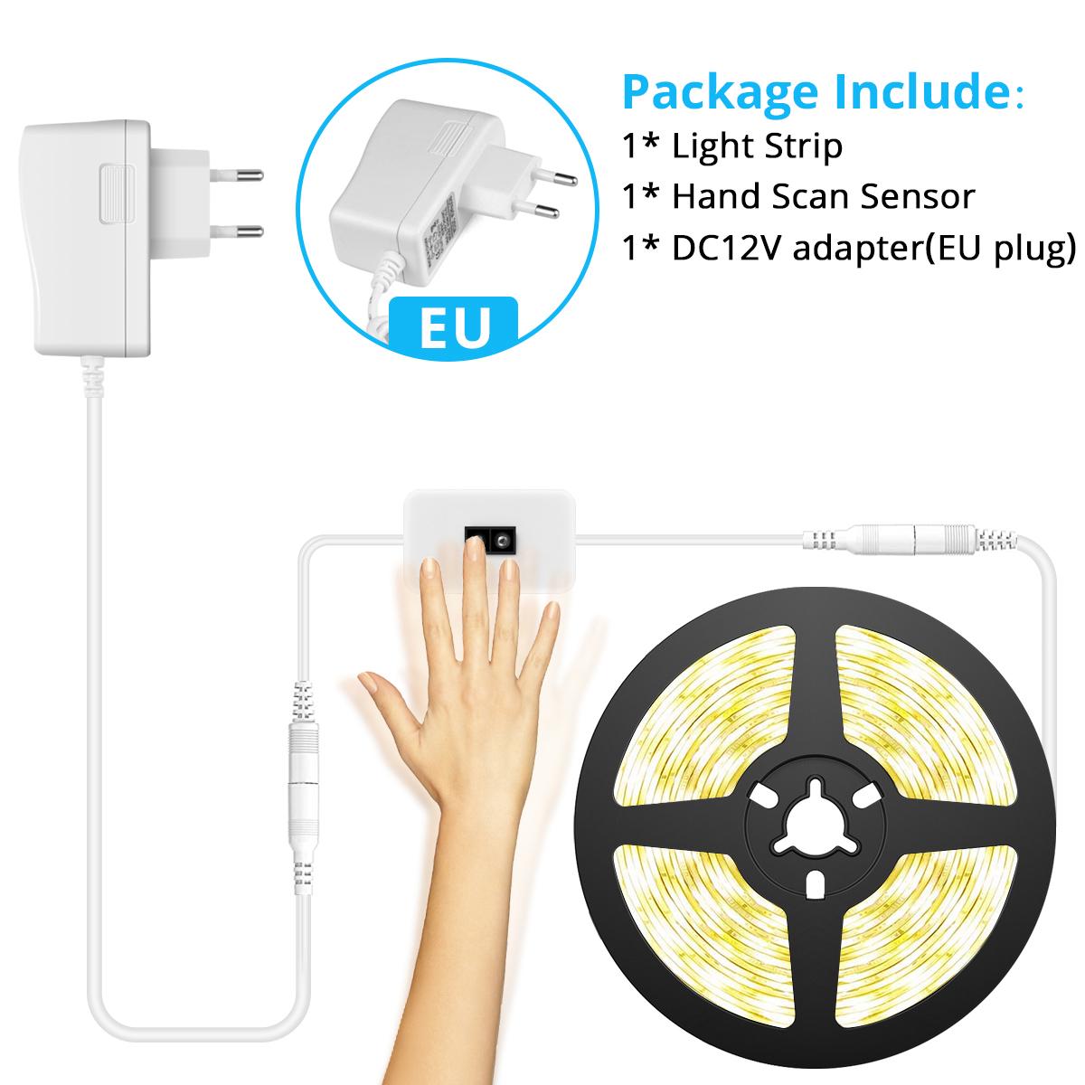 Датчик ручной развертки, светодиодный светильник для шкафа, кухонная световая лента, водонепроницаемый переключатель движения 12 В, гибкая настенная лента для домашнего декора, лестница, ночник, вилка европейского стандарта 3M