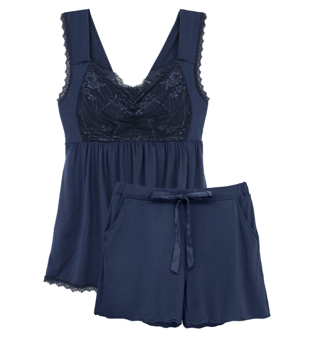 Два Хэтч Ночной Бюстгальтер Ками Брюки Клеш Включает Камисоль с чашечками и Размер Темно-синий и Комплект, Удобный для кормления, Беспроводной, Домашняя одежда, Шорты, 8812set, 65M,