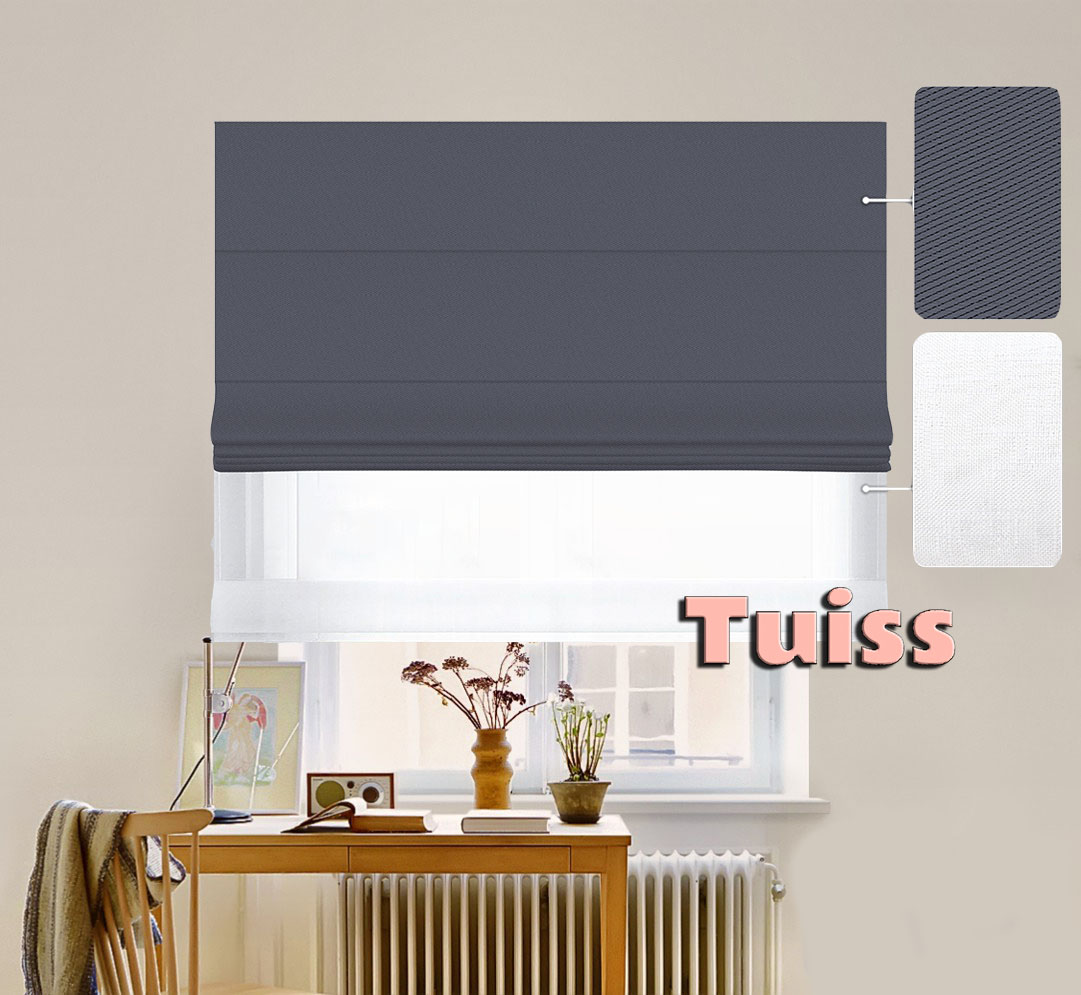 Двойная римская штора День-Ночь ТВИН Classic InHt Блэкаут Perfect 12488 Графитовый + Тюль Натурель Белоснежный 130х170 см