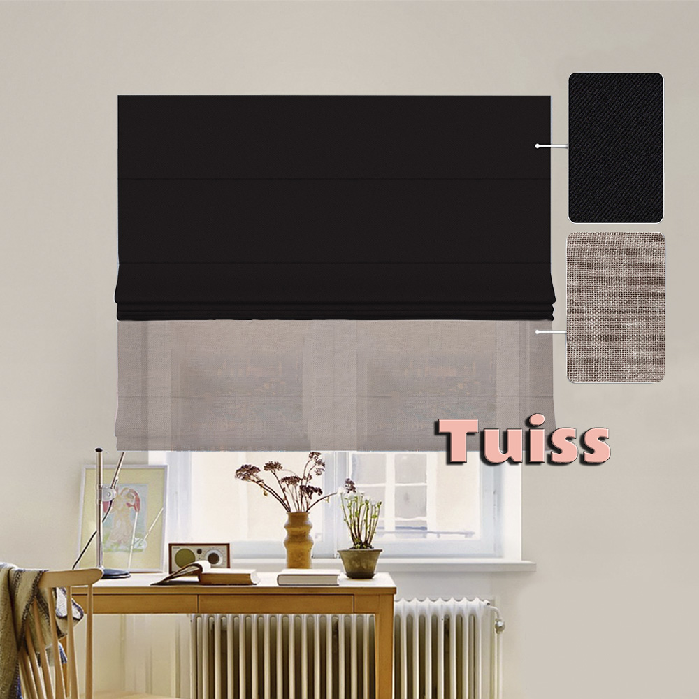Двойная римская штора День-Ночь ТВИН Classic InHt Блэкаут Perfect 23 Черный + Тюль Натурель Латте 180х170 см