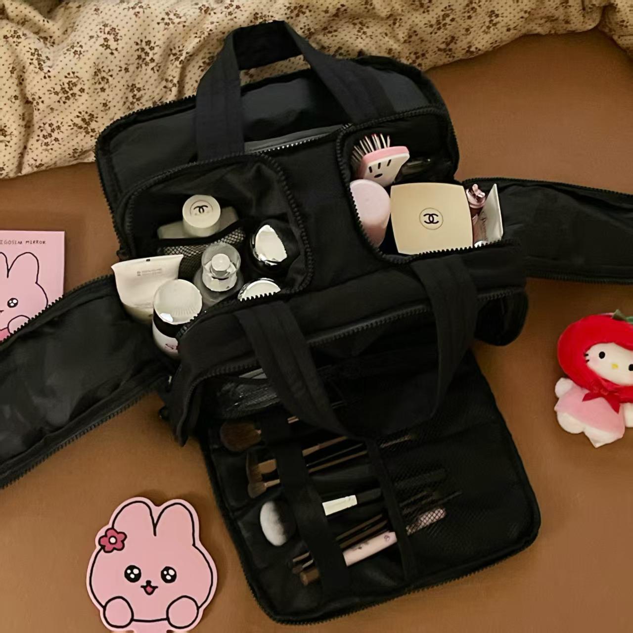 Двойная ширина, четыре отделения, большая вместимость, пушистая косметичка, дорожная портативная туалетная сумка, многофункциональная сумка для хранения с перегородками для деловых поездок 11.8*7.3*8.3 чёрный