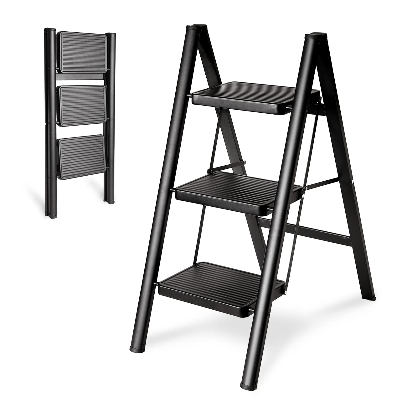 Двойная элитная складная ступенька 150 кг Вес для внутреннего и наружного стенда для мойки автомобилей 3-ступенчатая лестница, Легкая, Безопасная, Нескользящая, Стильная, Вместимость, чёрный