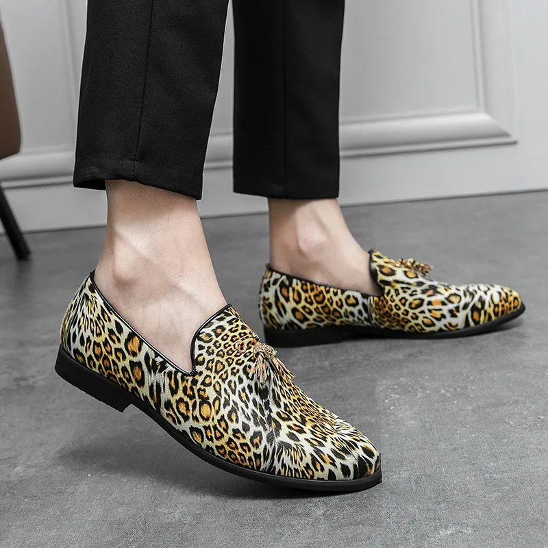 Metal Low Heels Loafers Colorful Print Men’s Single Shoes Comfortable Round Toe Male Patchwork Color Party Wedding Formal Shoes
