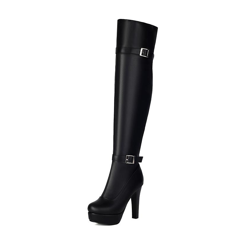 Двурядная металлическая пряжка ремня, боковая молния, круглый носок, платформа, ультравысокий толстый каблук, ботфорты выше колена, новые длинные сапоги 37 чёрный