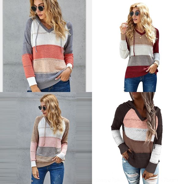 2020 autumn and winter new sweater knitted hooded sweater women's all-match outer wear stitching color long sleeve oq505, White;black
