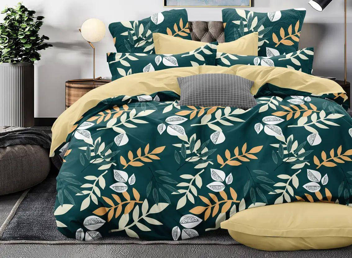 Двуспальный (Полиэстер) | Комплект постельного белья "Листья папороти" | Зеленый. Простынь 180х220 см, Коричневый