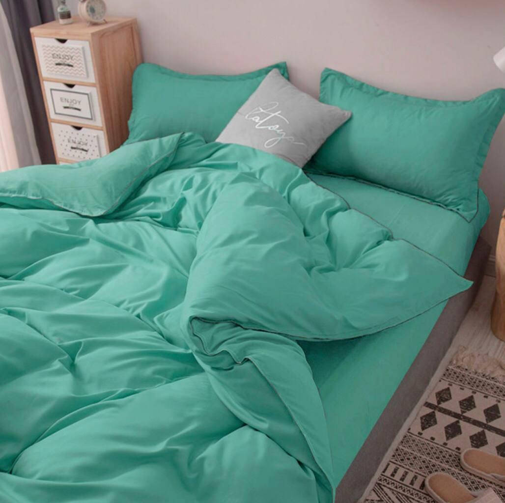 Двуспальный комплект постельного белья однотонный, зеленый бязь голд, хлопковое постельное белье., Зелёный