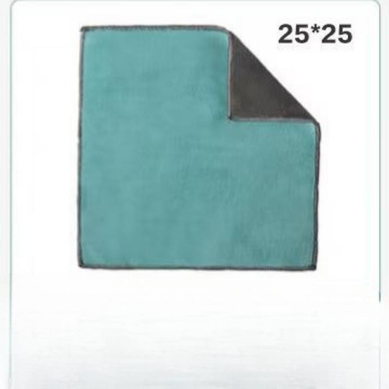 Двустороннее двухцветное композитное квадратное полотенце из кораллового флиса высокой плотности для мытья и чистки автомобиля, утолщенное волокно, абсорбирующая чистящая салфетка 25*25-1PC серый/синий
